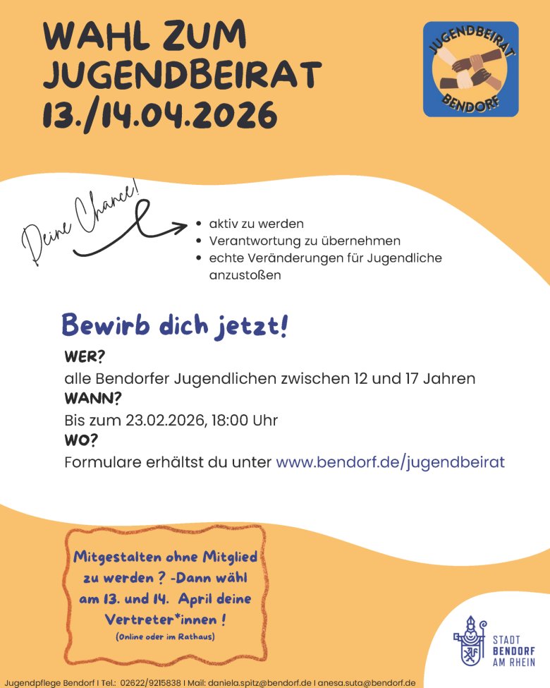 - Der Jugendbeirat ist die offizielle Interessenvertretung der Kinder und Jugendlichen in Bendorf