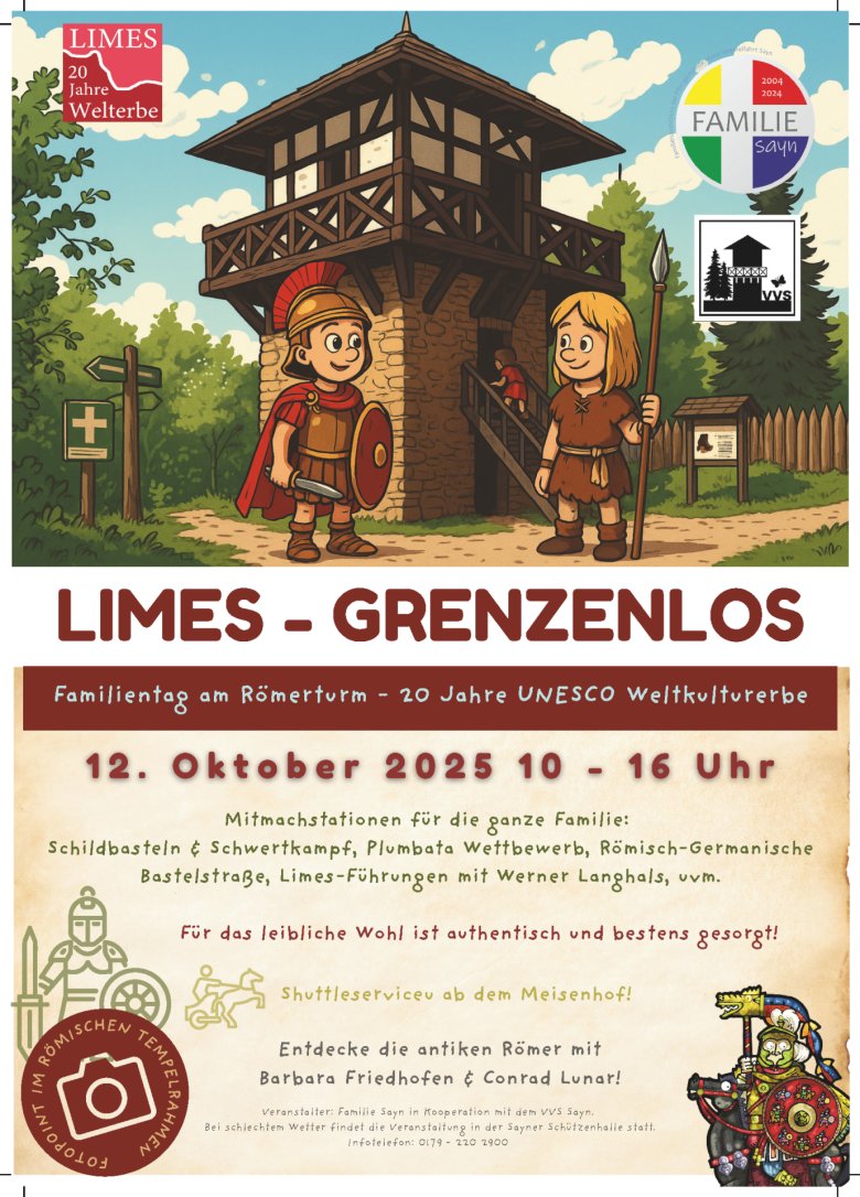 Die Familie Sayn und der Verschönerungsverein Sayn nehmen das Jubiläum „20 Jahre UNESCO Welterbe“ nun zum Anlass, die Geschichte des Limes für die ganze Familie lebendig werden zu lassen.