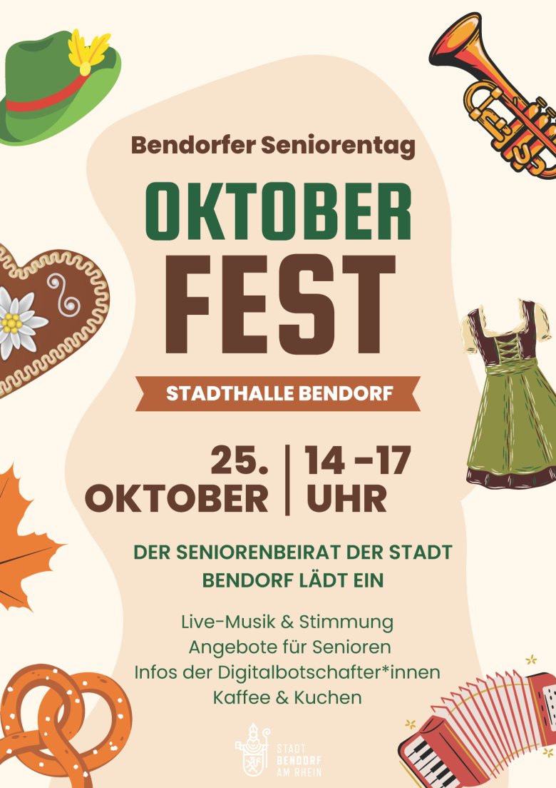 Am Samstag, 25. Oktober, lädt die Stadt Bendorf von 14 bis 17 Uhr zum traditionellen Seniorentag in die Stadthalle Bendorf ein. Unter dem Motto „Oktoberfest“ erwartet die Besucherinnen und Besucher ein unterhaltsamer Nachmittag mit Musik, Information und geselligem Beisammensein.