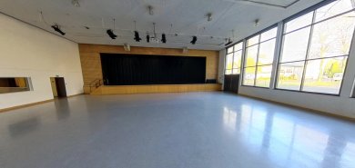 Ausgestattet mit Theke, Küche, Backstage- bzw. Künstlerbereich und einer festintegrierten großen Bühne eignet sie sich hervorragend auch für größere Events.